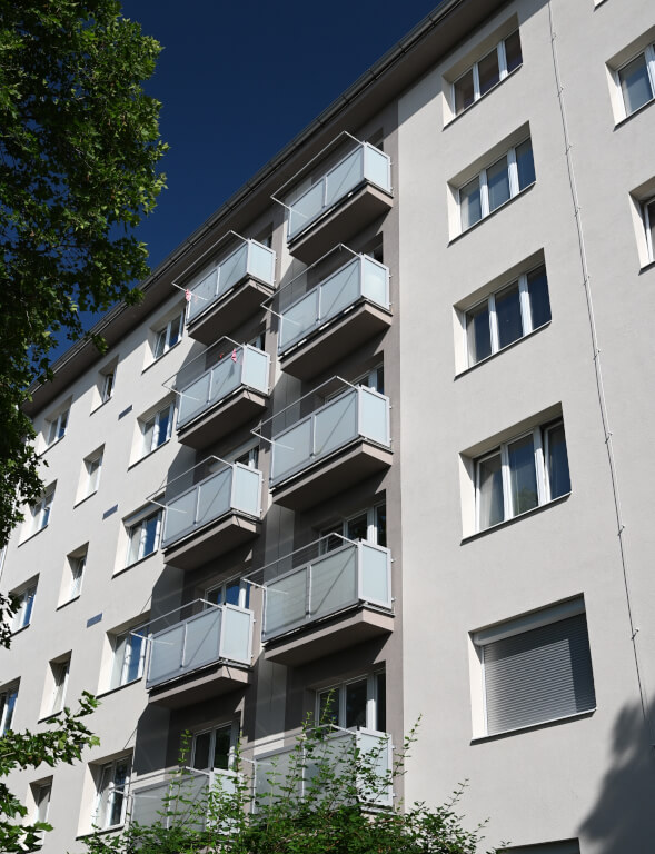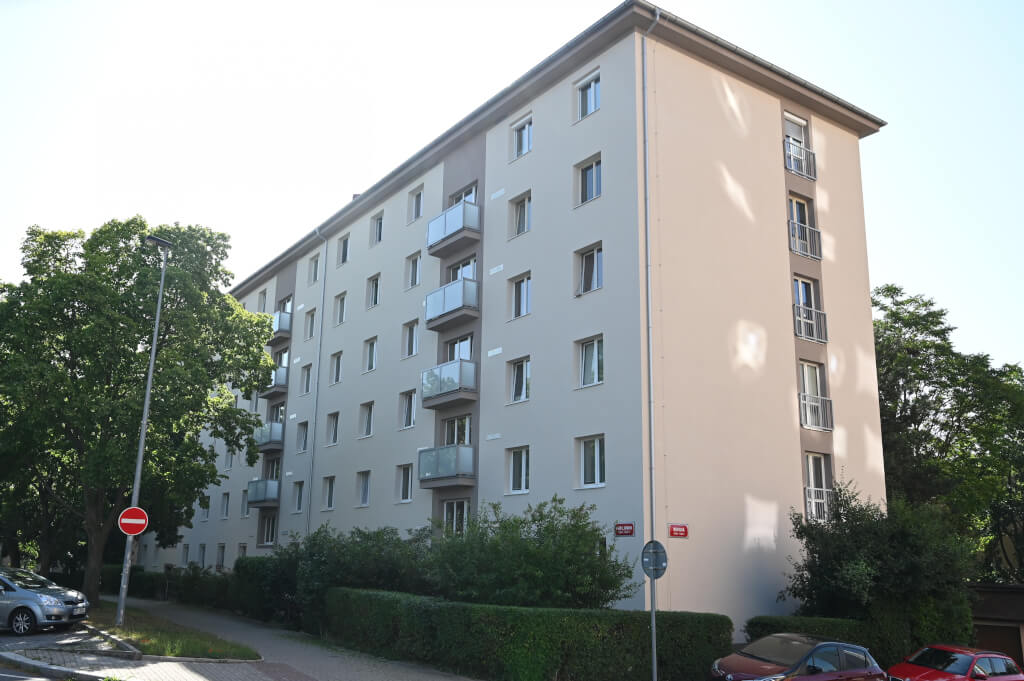 Na tomto pražském domě probíhala kompletní rekonstrukce exteriéru. Součástí prací bylo zateplení vnějšího obvodového pláště budovy systémem ETICS, včetně hydroizolace spodní stavby, sanace prostor balkonů, toť nová skladba podlahy a nové ocelové zábradlí, výměna některých oken, včetně nového ocelového zábradlí do francouzských oken, a nové elektro rozvody zvonkového systému. Dále pak nový okapový chodník, a další klempířské a zámečnické práce spojené s rekonstrukcí domu.