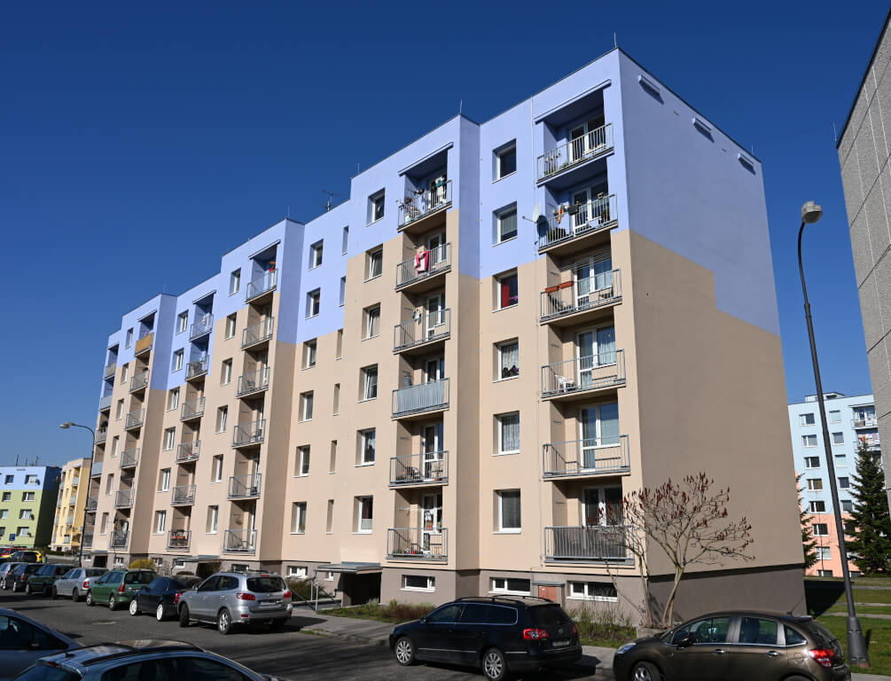 Tento panelový dům v Turnov jsme kompletně rekonstruovali. Zateplili jsme jej vnějším obvodovým pláštěm a kompletně sanovali lodžie, tedy vyměnili na nich podlahy, zábradlí a zasklení. Rekonstruovali jsme střechu a okapové chodníčky, vyměnili klempířské prvky, zateplili výtahové strojovny. Dále jsme rekonstruovali vstupy a dovyměnili okna.