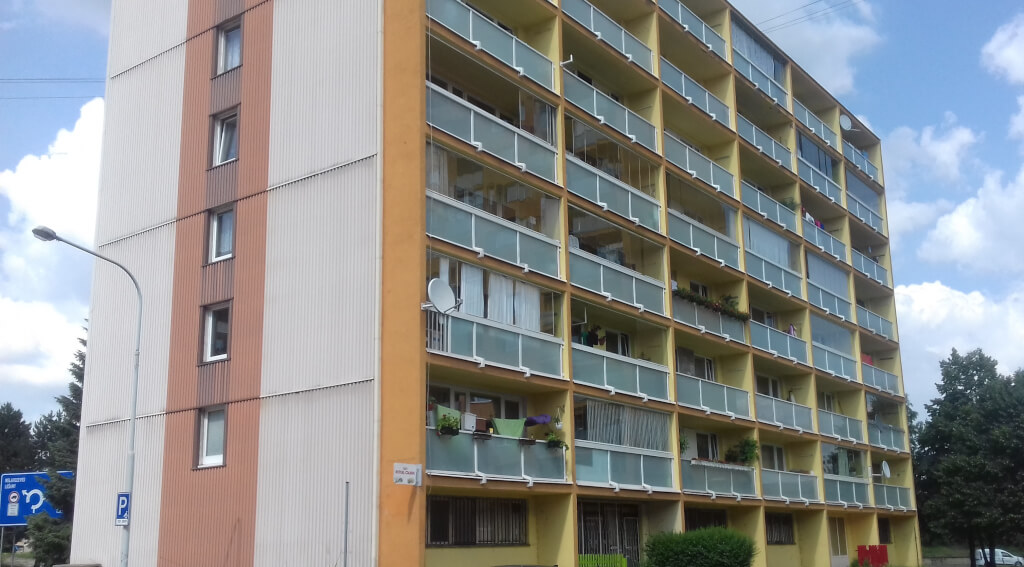 Na tomto domě v Kralupech nad Vltavou jsme prováděli kompletní rekonstrukci exteriéru včetně nové ploché střechy. Součástí prací bylo zateplení vnějšího obvodového pláště systémem Caparol, sanace prostor lodžií, včetně navýšení stávajícího zábradlí a nového zasklení, sanace prostor vstupu, výměna některých dveří a oken, včetně stínící techniky. Práce v interiéru zahrnovaly novou omítku ve vstupních prostorech a výměnu některých dveří. Práce na střeše obsahovaly novou skladbu pláště, zateplení a opravu strojoven výtahů, včetně nových dveříva oken. Dále pak nový hromosvod, okapový chodník, a další zámečnické a klempířské prácce spojeny s revitalizací.